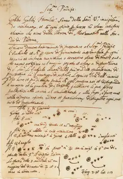 Galileo na přelomu let 1612 a 1613 pozoroval také planetu Neptun, nevěnoval jí však žádnou pozornost; v jeho poznámkách se objevila jen jako mnoho jiných nezajímavých nejasných hvězd.[5]