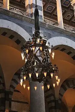 Galileova lampa v pisánském chrámu, podle legendy ji Galileo pozoroval pro popis kmitání kyvadla.