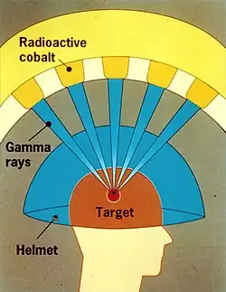 Tento asi dvacetitunový přístroj funguje na principu polosféry. Jedná se o helmu, do které je upevněná hlava. V helmě je umístěno 192 kobaltových zářičů, které jsou všechny zaměřeny na jedno místo, které ozáří. Díky malé intenzitě záření z jednotlivých zdrojů se ale nepoškodí okolní tkáň; léčebné účinky má jen na místo, kam směřují všechny zářiče.