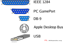 Dříve se používalo připojování těchto zařízení přes Gameport, IEEE 1284 nebo COM port. U konzolí pak hojně DB-9. Dnes se pro připojení používá již standardně sběrnice USB nebo bezdrátové Bluetooth. Velkou výjimku tvoří herní konzole, kde každý výrobce používá vlastní typ koncovky.
