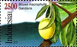 Gandarie Bouea macrophylla je méně známý, ale ceněný ovocný strom, pěstovaný zejména v nížinách tropické Asie. Zralé plody, známé jako gandarie (či gandárie), mají kyselou až nasládlou chuť a příjemnou sladkou vůni. Jedí se syrové, dušené ebo jako součást čatní. Připravuje se z nich také excelentní kompot nebo osvěžující nápoje. Nezralé plody slouží k výrobě kořenící pasty (sambal) a přidávají se do pokrmů, např. do kari omáček. Mladé listy se jedí s rýží nebo se z nich připravují saláty.[8][3][6][9] Rovněž plody Bouea oppositifolia jsou jedlé. Konzumují se přímo zelené nebo zralé, přidávají se jako zelenina do čatní nebo slouží k výrobě džemů. Mají příjemnou, kyselou chuť.[3][4][9][6] Obklady z listů Bouea macrophylla se aplikují při bolestech hlavy. Šťáva z listů slouží jako kloktadlo při kandidóze.[6]