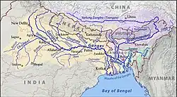 | Indický oceán, Bengálský záliv, Povodí Gangy (Indie 58,01 %, ČLR 19,65 %, Nepál 9,01 %, Bangladéš 6,55 %, součást Indie nárokovaná ČLR 4,11 %, Bhútán 2,44 %, území pod kontrolou Indie nárokované ČLR 0,07 %, Myanmar <0,01 %)[1] | |
