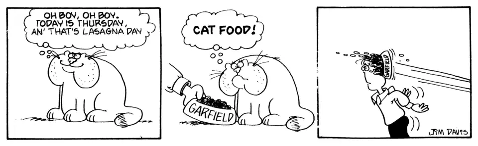 První výskyt Garfieldových oblíbených i neoblíbených věcí