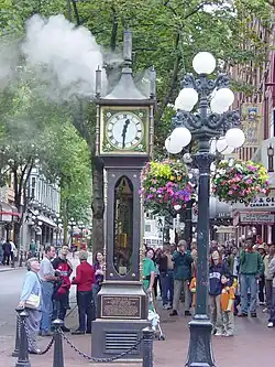 Nejslavnější (ne však nejstarší) památkou v Gastownu jsou parní hodiny Steam clock. Stojí na rohu ulic Cambie Street a Water Street. Donedávna byly poháněné elektřinou, po jejich opravě s finanční pomocí místních obchodů už opět fungují pouze na páru. Nízkotlaká pára pohání miniaturní parní stroj v podstavci hodin. K oznamování času slouží hvizd páry.