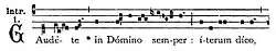 Celý text antifony pak zní: „Gaudete in Domino semper, iterum dico gaudete“.