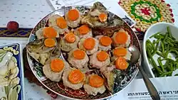 ![]() Původní způsob servírování gefilte fiš – nadívaná ryba | |