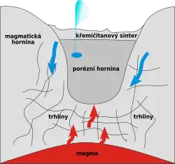 - ↑ a b c d JONES, Gregory L. How Geysers Form [online]. WyoJones Geyser Page. [cit. 2011-01-06]. Dostupné v archivu. (anglicky)