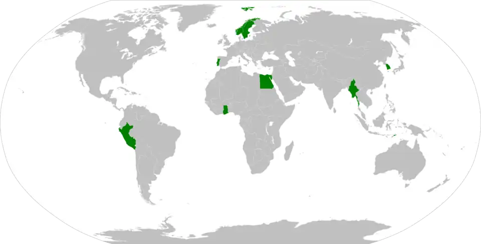 3. listopad 1961 – 31. prosinec 1971 | Asie & Pacifik | U Thant byl barmský diplomat a třetí generální tajemník Organizace spojených národů. Jako generální tajemník působil ve funkci dvě volební období. Během svého působení se zaměřil na mírové řešení konfliktů, včetně kubánské raketové krize. Také se snažil posílit úlohu OSN v rozvojových zemích a podporoval boj proti chudobě a hladomoru. Po svém odchodu z funkce generálního tajemníka se angažoval v mezinárodních organizacích a vyučoval na univerzitách po celém světě. | [22][23] | |