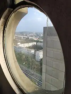 Pohled odzdola nahoru prostoru mezi oběma věžemi se objevil na přebalu publikace (katalogu výstavy) Toward a Concrete Utopia: Architecture in Yugoslavia, 1948–1980.[13][4]