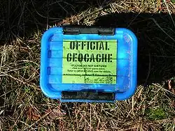 - ↑ ROCHELLE, Anna. Suspected pipe bomb ends up being geocache tube. Greene County Daily World. September 5, 2012. Dostupné online [cit. 21 January 2013].