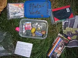 Pokud to rozměry schránky cache dovolí, může zakladatel keše přiložit drobné předměty na výměnu, nebo trackovatelné předměty (TB nebo GC – viz níže).