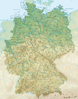 - Středoněmecká vysočina – pahorkatá část středního a jižního Německa, tvořená řadou dílčích pohoří s průměrnou nadmořskou výškou 500–1000 m n. m. Navazují na něj i některá česká pohoří, např. Krušné hory (Erzgebirge), Smrčiny (Fichtelgebirge) nebo Šumava (Bayerischer Wald).