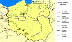 Vodní cesty v Polsku vedou splavnými úseky řek a jezer a umělými kanály. Mezi nejdůležitější polské kanály patří Bydhošťský kanál (24,7 km, 6 zdymadel), Glivický kanál (40,6 km, 6 zdymadel), Augustovský kanál (101 km, 18 zdymadel) a Hornonotecký kanál (25 km, 6 zdymadel). Celková délka splavných umělých kanálů je 440 km. Splavné jsou téměř celé úseky řek Odra, Visla a Noteć. Splavná je také velká část řek Warta, Narew, Biebrza, Bug a vodní cesty vedoucí přes mazurská jezera propojená umělými kanály. Povodí Odry a Visly je kanály propojené s povodím Labe (kanál Odra-Havela, kanál Odra-Špréva), povodím Němenu (Augustovský kanál) a povodím Dněpru (kanál Bug-Dněpr). Přes Polsko vedou 3 mezinárodní vodní cesty: E30 (Dunaj/Bratislava-Balt/Štětín), E40 (Balt/Gdaňsk-Černé moře/Oděsa) a E70 (Atlantský oceán/Antverpy-Balt/Klaipeda).