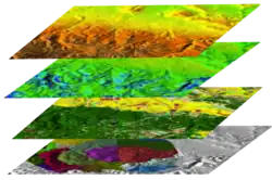 Pro geografická data je typické uspořádávání informací do vrstev. Na uživateli systému zůstává, se kterou vrstvou chce pracovat, které chce mít zobrazeny, a které nečinné. [2][3]