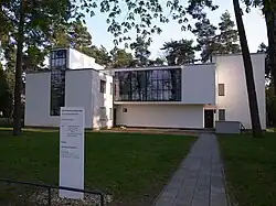 - ↑ Od roku 1996 součást světového kulturního dědictví UNESCO společně s dalšími stavbami Bauhausu ve Výmaru, Desavě a Bernau bei Berlin.