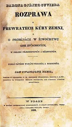 - DE CUVIER, Georges. Barona Gjřjho Cuviera Rozprawa o přewratech kůry zemnj, a o proměnách w žiwočistwu gimi způsobených, w ohledu přjrodopisném a děgopisném. Překlad Jan Svatopluk Presl. Praha: Knížecí arcibiskupská knihtiskárna, 1834.