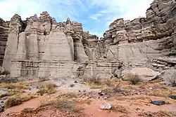 - Skalní stěna za Abiquiu, vyschlý vodopád (1943).