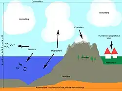 Schéma prvků krajinné sféry (na obrázku je konkrétně její výřez - krajina) s horní a dolní hranicí.