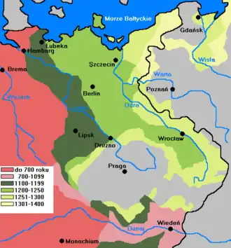 Tato území začaly na konci prvního tisíciletí našeho letopočtu osídlovat slovanské kmeny. Od vrcholného středověku byla tato oblast germanizována osadníky ze západu, především Sasy a Bavory v rámci osídlování východních území.