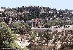 Zahrada Getsemanská se nachází na úpatí Olivetské hory,[4] v údolí Cedronu. Zahradě dominuje Kostel všech národů, známý také jako Kostel Utrpení, postavený na místě byzantského kostela zbořeného roku 614 armádou perských Sásánovců a křižáckého kostela, který byl zničen roku 1219. Poblíž se nachází ruský pravoslavný Kostel Marie Magdaleny s typickou zlatou cibulovitou kopulí ve stylu jaroslavských kostelů 17. století. Kostel Marie Magdaleny byl vybudován ruským carem Alexandrem III. na památku jeho matky Marie Alexandrovny.