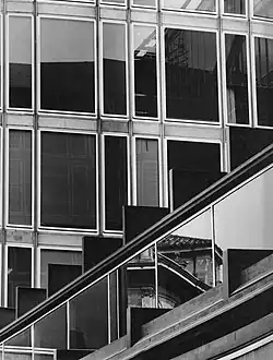 byl pořízen v roce 1960 ve vaporettu se zrcadlovými dveřmi, takže cestující jsou uvězněni v mozaice odrazů. Zároveň všední – cestující jsou obyčejní dojíždějící – a exotický, zachycuje paradox města uvězněného v nadbytku reprezentace.[10]