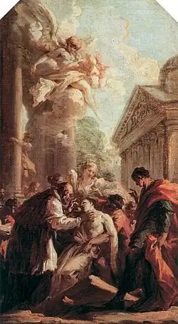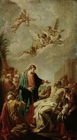 - ↑ Šafařík E. A. Giovanni Antonio Pellegrini: Uzdravení ochrnulého. In: Benátské malířství 18. století (katalog výstavy). Vydala Národní galerie v Praze a Muzeum Hlavního města Prahy, 1964. Str. 29