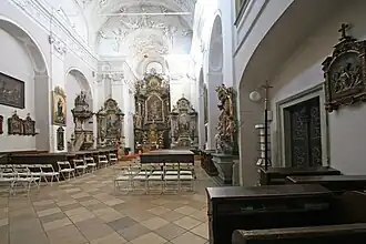 Velmi cenná je bohatá štuková výzdoba klenby kostela, která zobrazuje myšlenku, že celý svět a všechno tvorstvo chválí Hospodina (žalm 150 a 148). Tvůrcem tohoto díla byl mistr štukatér Giovanni Battista Maderna. Tato práce prý stála víc peněz než celá stavba kostela.
