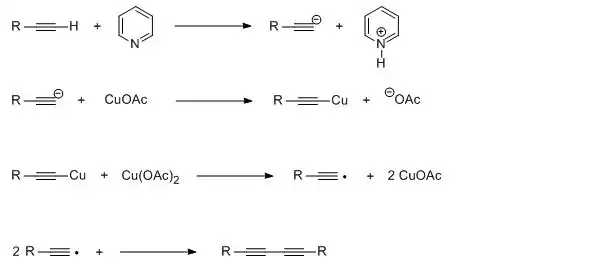 Při Eglintonově reakci se spojují dva koncové alkyny za přítomnosti měďnaté soli, například octanu měďnatého.[3]