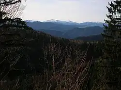 Gleinalm (Hochalm) od severu (Seckau-Sonnwenddorf, v přední části je hřeben Gaaler Höhenzug) | |