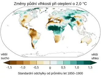Šestá hodnotící zpráva IPCC předpokládá změny průměrné vlhkosti půdy, které mohou narušit zemědělství a ekosystémy. Snížení půdní vlhkosti o jednu směrodatnou odchylku znamená, že průměrná půdní vlhkost bude přibližně odpovídat devátému nejsuššímu roku mezi lety 1850 a 1900 v dané lokalitě.