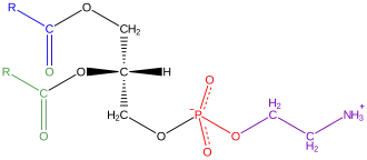 U cefalinu (fosfatidylserin) je hydrofobní ocas tvořen fosfátem s napojeným serinem. Výměnou serinu za ethanolamin potom vzniká fosfatidylethanolamin.
