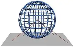 Síť rovnoběžek a poledníků zobrazená předchozím způsobem. -