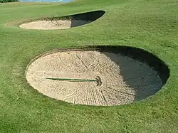 Bunker je považován za překážku a tudíž se hlava hole nikdy nesmí dotknout povrchu před odehráním míčku ať už při vstupu nebo při založení. Pokud hráč toto pravidlo poruší, musí si připočítat dvě trestné rány. Hráči také není dovoleno z bunkeru odstraňovat volně ležící přírodní předměty, pokud není v místních pravidlech uvedeno jinak.[3] Cílem této techniky není udeřit přímo míček, ale udeřit hlavou hole do písku těsně za míčkem. Hůl tedy ve většině případech není v přímém kontaktu s míčem, jelikož je míč vymrštěný do vzduchu pomocí vrstvy písku mezi holí a míčem. Hůl sand-wedge je uzpůsobena k tomu, aby hra z bunkeru byla pro hráče co nejsnadnější. Hůl má velmi široké dno a zadní okraj vyvýšeniny je níže než přední hlava hrany hole.[4]