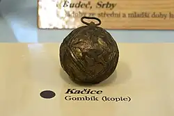 Nálezy gombíků v hrobech na Valech u Mikulčic jsou datovány již na počátek 9. století. Největší množství nálezů gombíků je datováno do poslední třetiny 9. století.