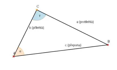 - Kosinus je poměr délky odvěsny přilehlé tomuto úhlu a délky přepony.