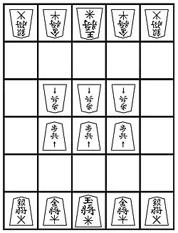 Na rozdíl od standardního šógi 9x9, se hraje na desce 5x6. Povyšovací zóna jsou dvě poslední řady. Jsou použity jen některé kameny: Král, Zlatý generál, Stříbrný generál a Pěšec. Ostatní pravidla jsou totožná jako u standardních šógi.