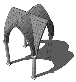 Vysvětlení křížové klenby jako průniku dvou na sebe kolmých valených kleneb