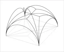 U visuté klenby je svorník spuštěn hluboko pod vrchol.[1]