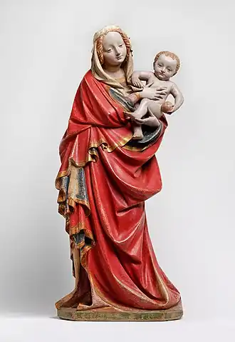 Vrcholným projevem gotického výtvarného umění byla zpodobení Panny Marie. Zobrazovala se buď jako madona s malým Ježíškem nebo později jako pieta – truchlící matka s mrtvým Kristovým tělem, sejmutým z kříže, v klíně (z italského pietà – lítost). Sochy a obrazy s tímto námětem se vztahovaly ke dvěma významným okamžikům života Ježíše Krista, jeho narození a úmrtí. Pro postavy, které zobrazovalo gotické sochařství a malířství, bylo rovněž typické směřování vzhůru – byly vysoké a štíhlé, mírně prohnuté do tvaru písmene S. Jejich tváře se vyznačovaly novým rysem. Nacházíme v nich výrazy zcela pozemských lidských citů, prosté radosti nebo velkého utrpení. Ztvárnění Ježíše jako nemluvněte odpovídá středověkému chápání dítěte jako malého dospělého člověka. Dalším typickým námětem byl Kristus na kříži (krucifix) a apoštolové se svými atributy. Materiálem byl buď kámen, nebo byly sochy vyřezávány z lipového dřeva často velmi schopnými řezbáři. Socha se potahovala jemným plátnem, které přilehlo, a potom se polychromovala (barvila). Postupně pozorujeme tendenci realismu, pohybu a přibližování se ke všemu, co bylo v umění starších evropských civilizací původně známo.
