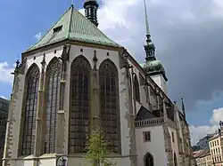 Lomené oblouky a fiály na kostele sv. Jakuba v Brně