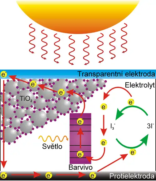 - ↑ European Institute for Energy Research - Dye-Sensitized Solar Cells. web.archive.org [online]. 2006-02-10 [cit. 2019-09-20]. Dostupné v archivu pořízeném z originálu.