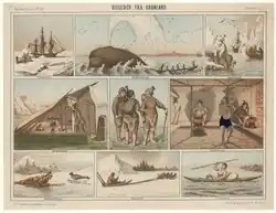 - ↑ BARÜSKE, Heinz. Grönland. Kultur und Landschaft am Polarkreis.. Köln: DuMont Buchverlag, 1990. ISBN 3-7701-1544-9. S. 162.