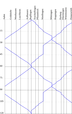 - rovnoběžné grafikony lze použít, pokud všechny spoje mají stejné jízdní doby. Na svislé ose pak nemusí být vzdálenost, ale standardní jízdní doba mezi stanicemi.