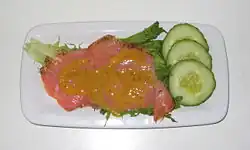 Gravlax je pochoutka skandinávské kuchyně, která se připravuje ze syrového lososího masa. Vykostěné filety (kůže se obvykle ponechává) se obalí v hrubozrnné mořské soli, pískovém cukru a čerstvém kopru (někdy se přidává i alkohol, například vodka, aby ryba zkřehla)[1] a nechají se nejméně dva dny marinovat v chladu. Pak se maso očistí a krájí na velmi tenké plátky. Podává se s tmavým chlebem a omáčkou hovmästarsås složenou z hořčice, oleje a sekaného kopru jako předkrm nebo součást švédských stolů.