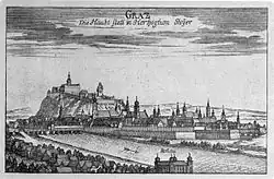 Schloßberg (Zámecký vrch) – komplex několika staveb a opevnění na 120 m vysokém kopci, zdvihajícím se přímo od břehu řeky Mur. Tvoří střed historického centra a je hlavním symbolem města. Hrad Schloßberg je zapsán v Guinnessově knize rekordů jako nejhůře dobyvatelná pevnost. Dokázal totiž čelit mnoha útokům turecké i francouzské armády. Jako symbol neohrozitelnosti najdeme na té nejvyšší terase opevnění sochu lva. Ve 2. světové válce zde byl vybudován 6 km dlouhý systém štol, které měly 20 vchodů a sloužily jako kryt pro 40 tisíc lidí. Část štol je zpřístupněna.