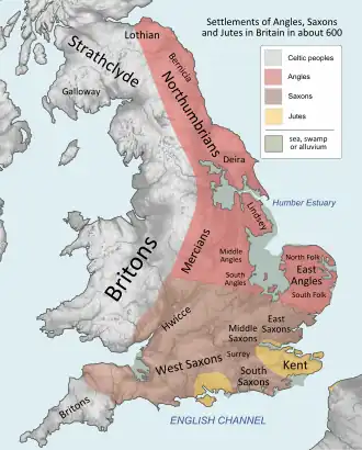 - ↑ An introduction to Anglo-Saxon England, str. 132–133.