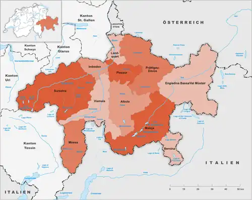 Podrobnější informace naleznete v článku Seznam obcí v kantonu Graubünden.
