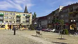 - Radnice – klasicistní budova uprostřed hlavního náměstí (Rynku) z roku 1840, do níž byla integrována renesanční věž – pozůstatek starší radnice z roku 1551;