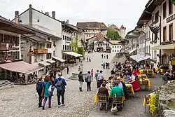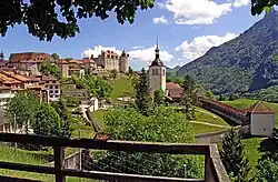Středověké město je důležitým turistickým místem v horním údolí řeky Sány a dalo jméno sýru Gruyère. Nachází se na vrcholu 82 metrů vysokého kopce s výhledem na údolí Sány a jezero Lac de la Gruyère.