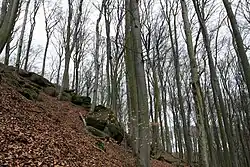 Fauna bezobratlých je vázána hlavně na bukové porosty, rozkládající se dřevo a listovou opadanku.[1] Z brouků se zde vyskytují zástupci rodu Notiophylus, dále střevlík zahradní (Carabus hortensis), roháček bukový (Synodendron cylindricum), chrobák velký (Geotrupes stercorarius), pod kůrou se vyskytují tesaříci rodu Rhagium. Motýli jsou zastoupeni běžnými druhy, např. babočkou síťovanou (Araschnia levana) ale i druhy vázanými na listnaté lesy, jako jsou Stigmella tityrella, Aglia tau a Adela reaumurella. V opadaném listí můžeme nalézt stonohy rodu Cryptops a pavouky slíďáka hajního (Pardosa lugubris) a pacedivku zemní (Coelotes terrestris).